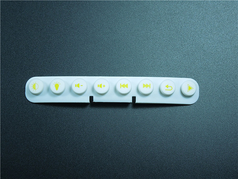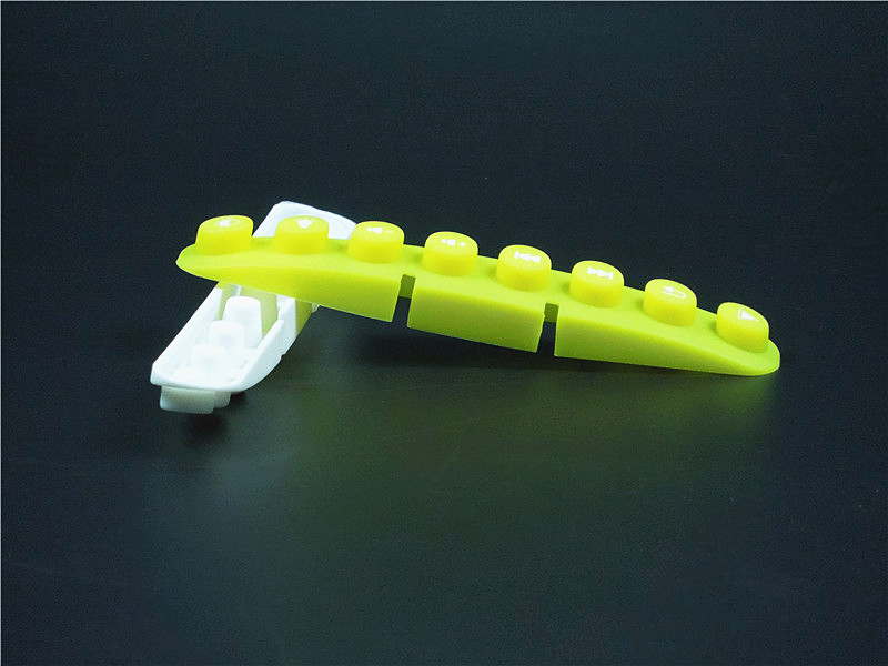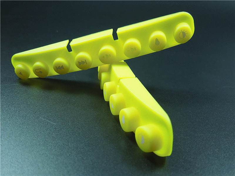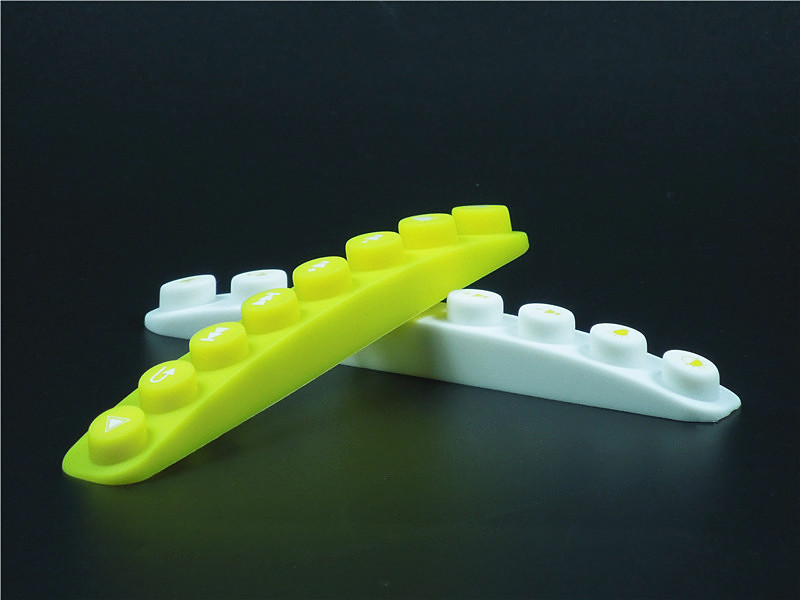 此款硅膠按鍵采用淡黃色色母調(diào)制,黃色色母加上半透明的硅膠原料配合硫化劑的添加是通過在里面加入對應(yīng)顏色比例的顏色色膏混煉,得到相應(yīng)需要的顏色,可自定義顏色定制加工生產(chǎn),原材料采用食品級環(huán)保硅膠、質(zhì)地柔軟,可塑性強(qiáng)。低碳環(huán)保,無毒無味,柔軟、防滑、防震、防滲水、隔熱、不易老化、不褪色、易清洗。